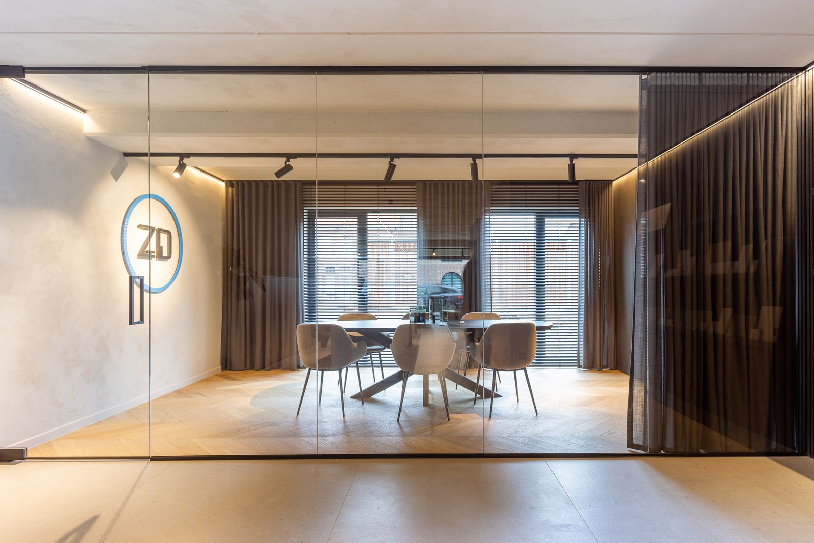 Een glazen wand geeft elke ruimte een strakke, minimalistische uitstraling. De profielen en details zijn fijn afgewerkt, zodat de focus op het glas en de lichtinval blijft liggen.