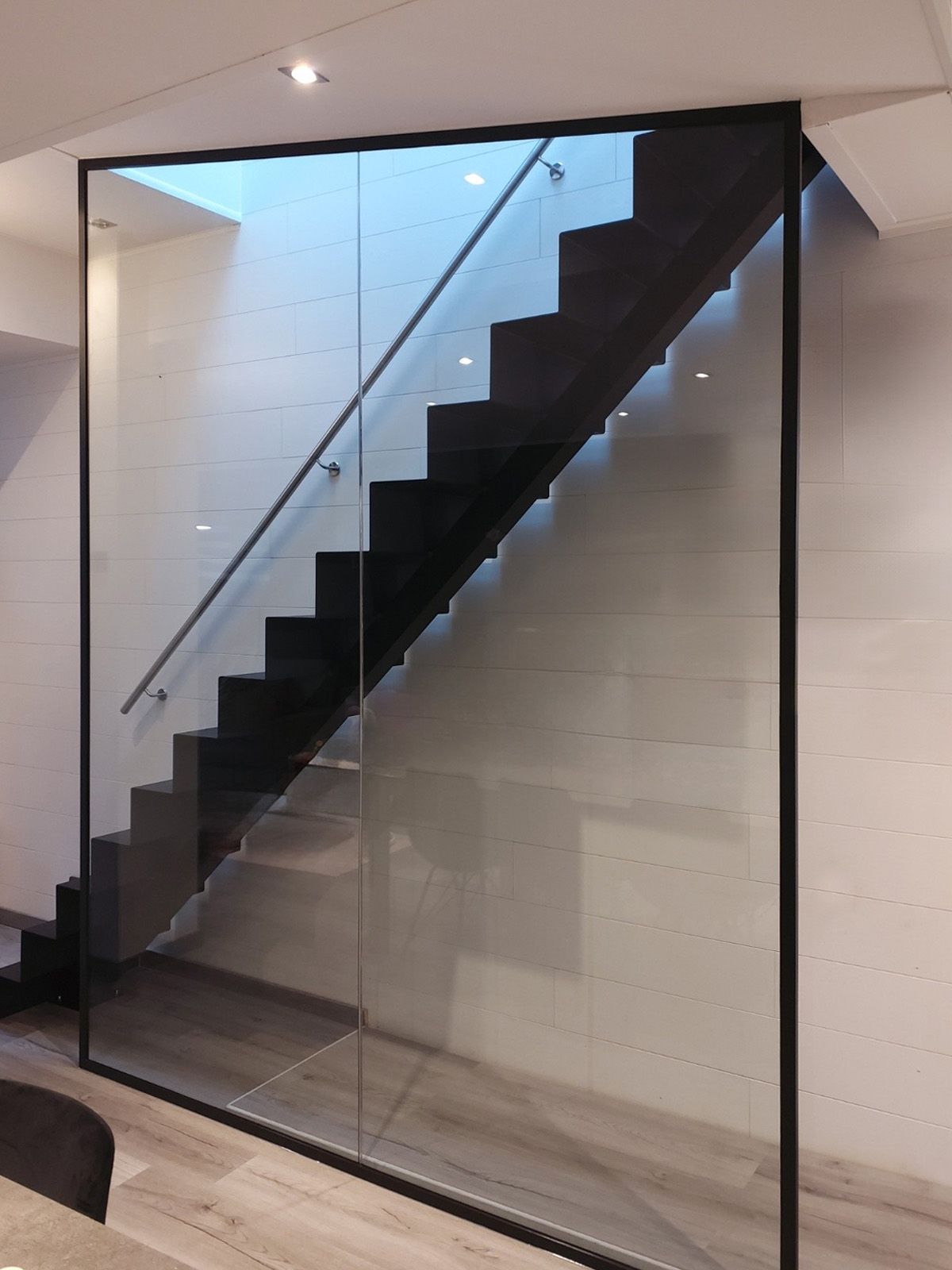 Met een glazen wand scheid je ruimtes op een stijlvolle manier, zonder aan licht of ruimtegevoel in te boeten. In tegenstelling tot een klassieke muur blijft de openheid behouden, terwijl je toch een duidelijke afbakening creëert. Perfect in woningen en kantoren.