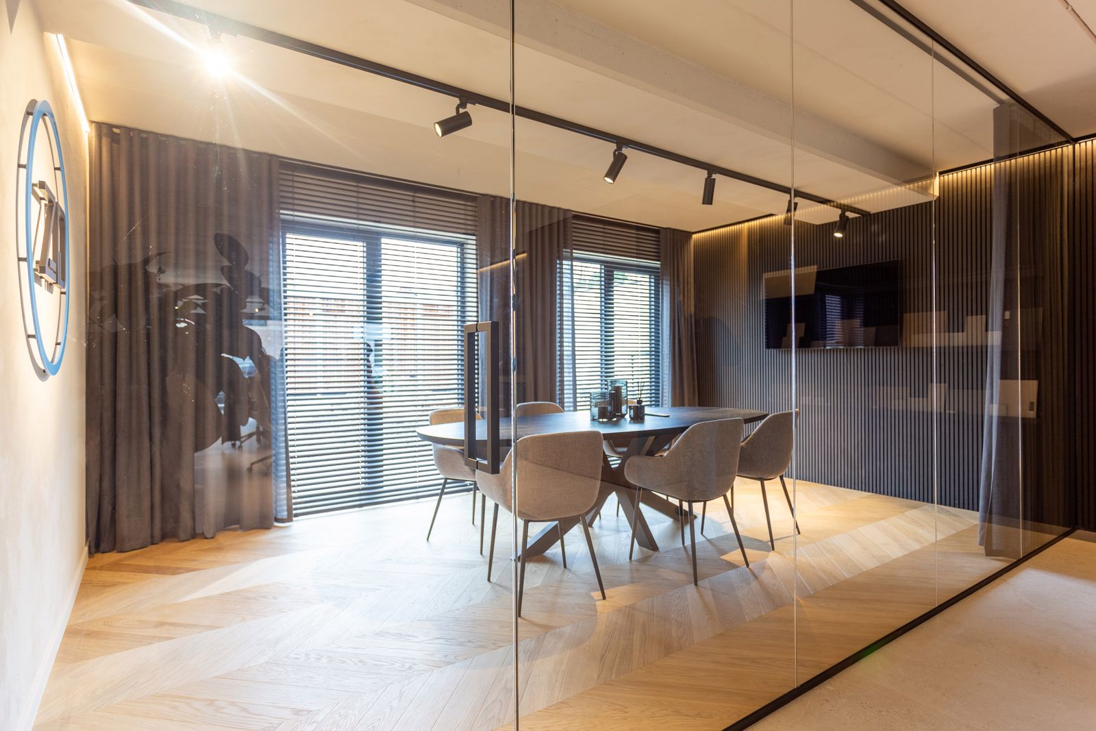 Onze glazen scheidingswanden worden volledig op maat uitgewerkt, met aandacht voor akoestiek, veiligheid en uitstraling. Met of zonder deur, met een zwarte structuur of in heldere uitvoering: jij kiest, wij realiseren.